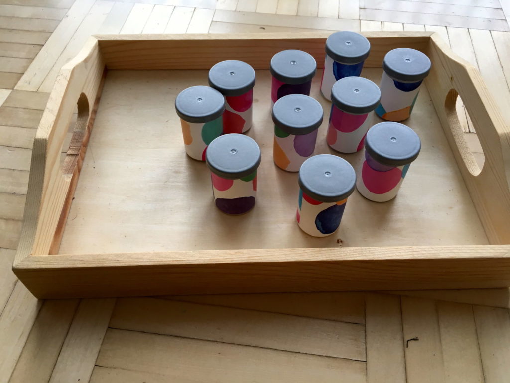 Je dobré mít i možnost kontroly jiným smyslem než poslechem. Jednou z možností je samozřejmě krabičku otevřít. Jednodušší ale je nalepit zespodu krabiček vždy dvě stejné samolepky, podle kterých může dítě zkontrolovat, že se nespleto.